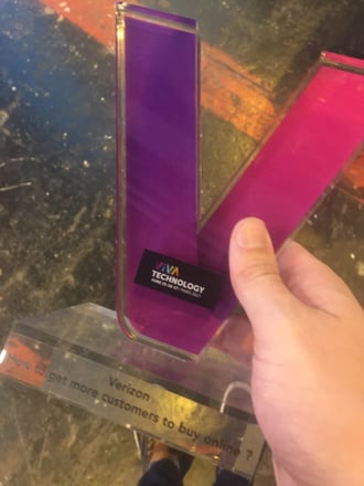 Duel Co-Founder, Paul Archer, accepting the big win from Verizon.